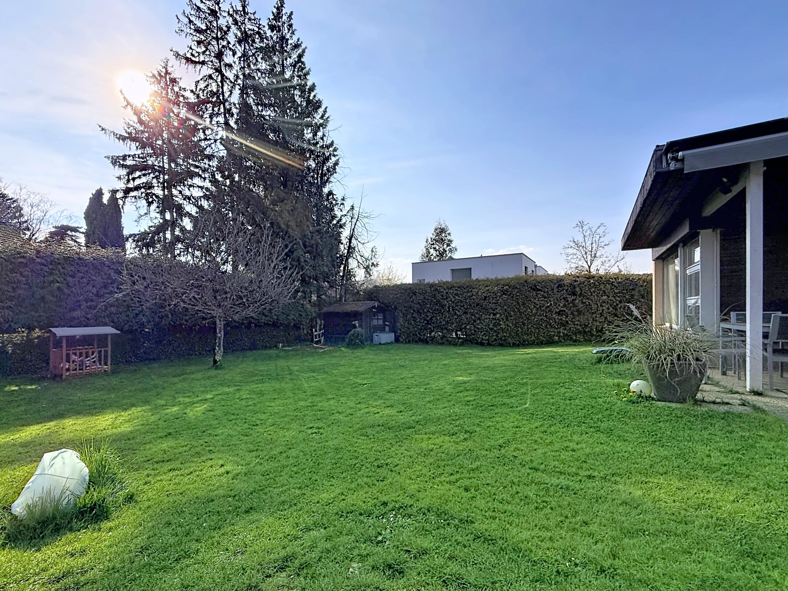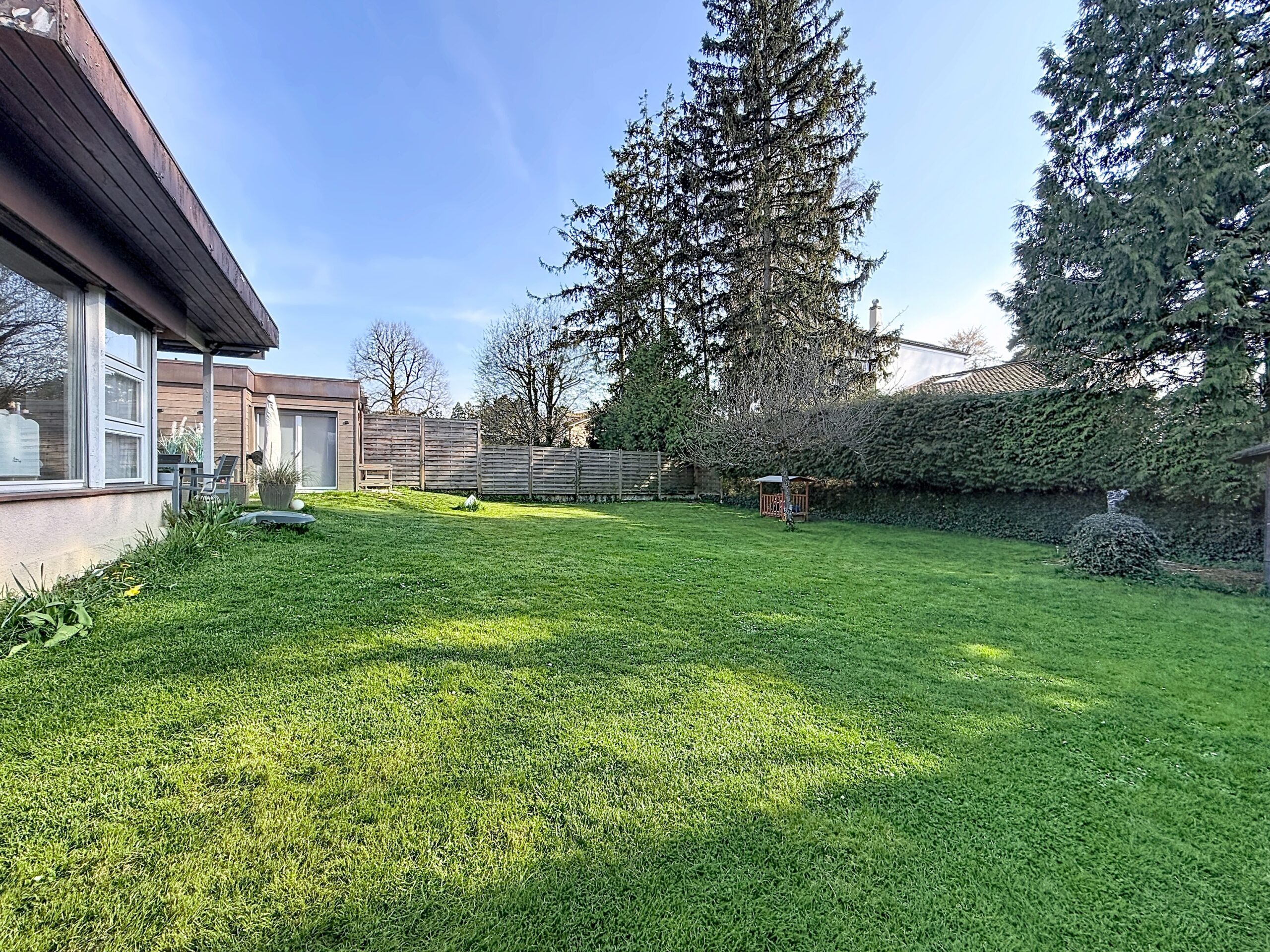 Dans un environnement résidentiel exclusivement composé de villas, cette charmante villa jumelle de plain-pied offre un cadre de vie calme, verdoyant et particulièrement recherché au Grand-Saconnex.