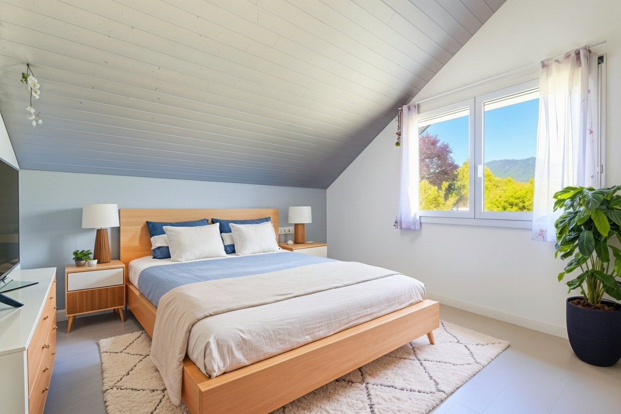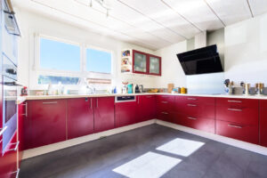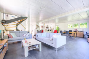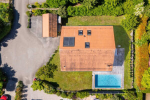Côté confort moderne : pompe à chaleur, panneaux solaires, aspiration centralisée (plus besoin de transporter l’aspirateur), et serrure biométrique à empreinte digitale à l’entrée.