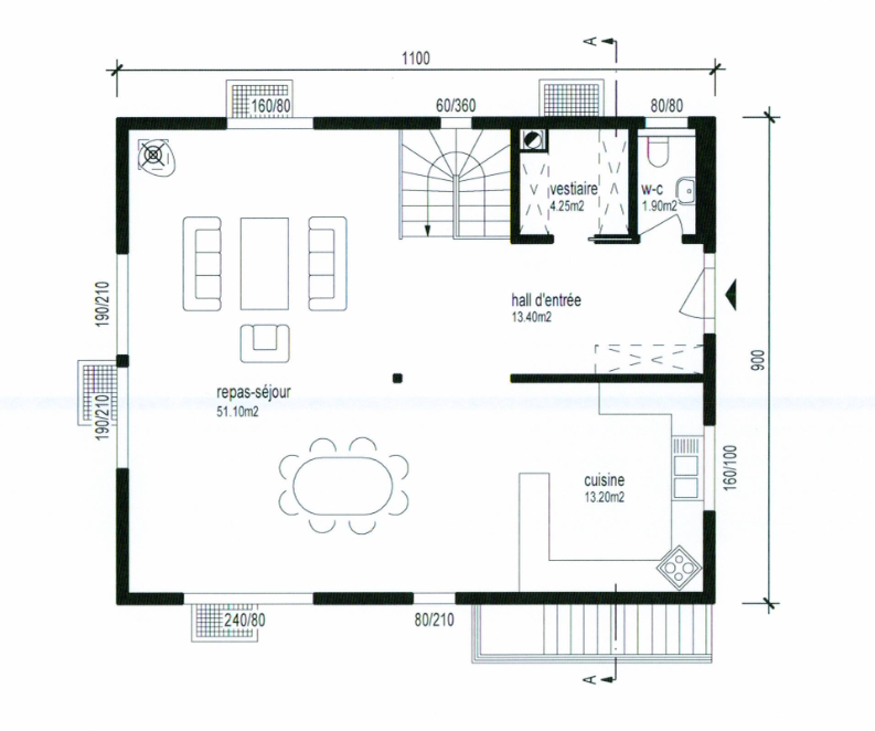 • Terrain : 649 m² | Volume : 951 m³