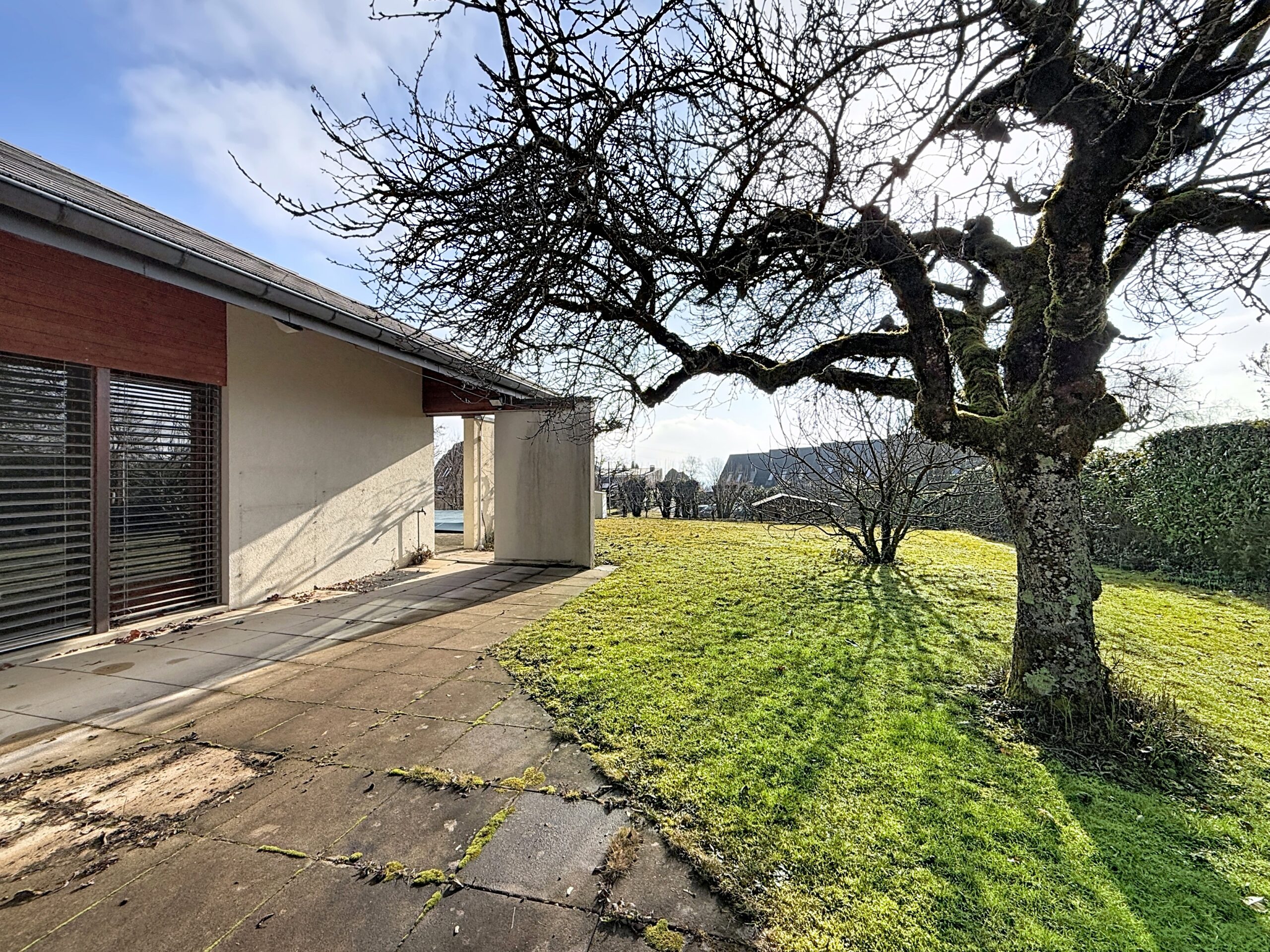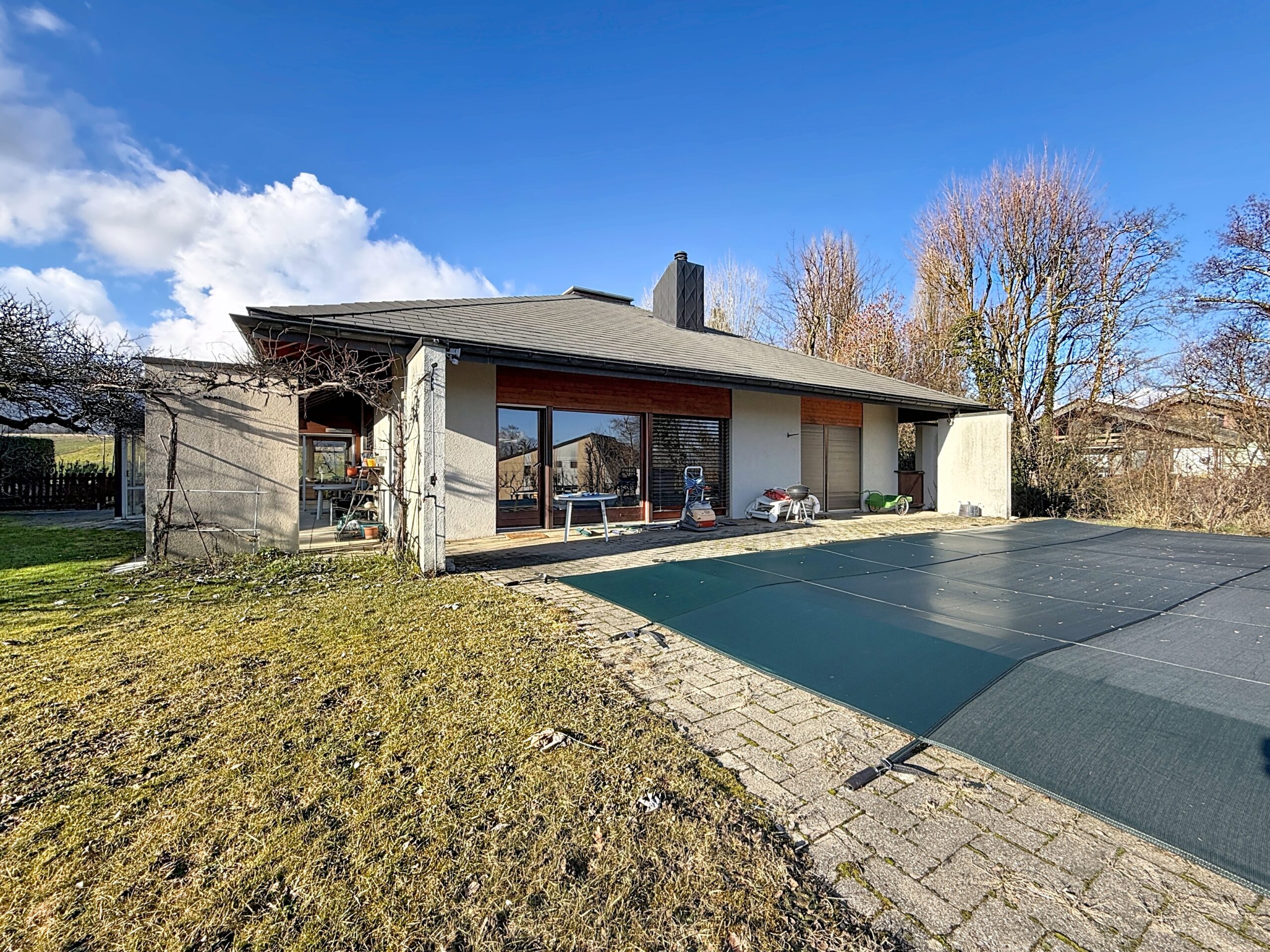 Villa d’architecte individuelle à rénover à Borex avec gros potentiel, piscine, vue Alpes, calme